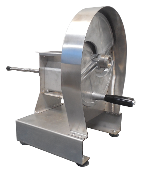 (08.09.2025)Ручная резка на слайсы ВР-303 - это машина для ручной нарезки продуктов (например, овощей) на кольца толщиной от 0,5 до 15 мм. Принцип работы заключается в том, что работник помещает продукт в приемную ячейку, левой рукой прижимает его толкателем, а правой рукой вращает резательный блок, получая на выходе нарезанный слайс (кольцо) заданной толщины.
